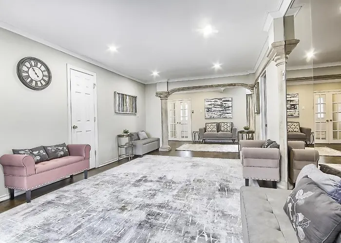Dojazd na lotnisko Toronto Island zajmuje 22 min, a atrakcje przyrodnicze, takie jak Sunnybrook Park, są w 3 km. Muzeum Aga Khan leży 25 min spacerem stąd, a Ogród Botaniczny w Toronto jest w około 3 km. Willa znajduje się w dzielnicy North York prawie 25 min pieszo od takich kulturalnych miejsc jak Centrum Nauki Ontario.